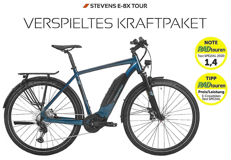 Stevens E-Antelao 23 mit 630 WH und 85 NM Bosch CX Smart System mit 625 WH in Rahmenhöhe 18 und 20 Zoll